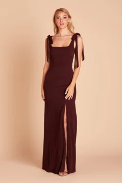 Our very first convertible crepe bridesmaid dress is equal parts modern and sweet. The square neckline is super flattering as it frames your collarbone and gives the illusion of being long and lean. The best part is that it comes with two extra straps that you can tie into a bow on each shoulder, instantly transforming this modern bridesmaid dress into a sweet look. Bows on or off, this is a dress for all the occasions.