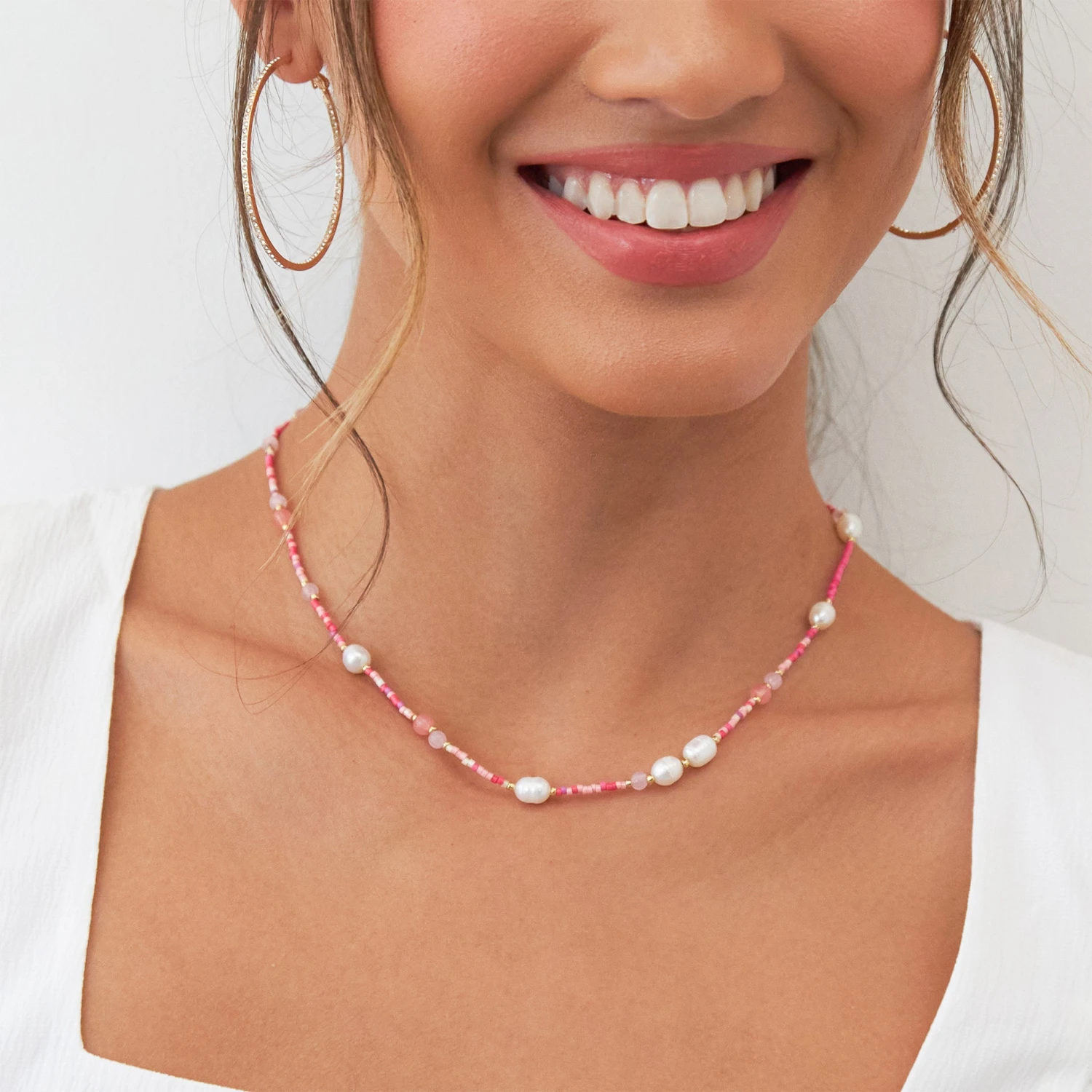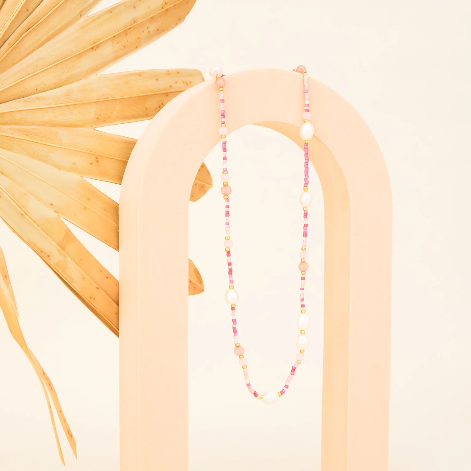 Here’s a new one for your necklace stack. Pair this bead and pearl necklace with your daintiest chains or wear it solo for a classic look you could wear from beach to wedding and back.