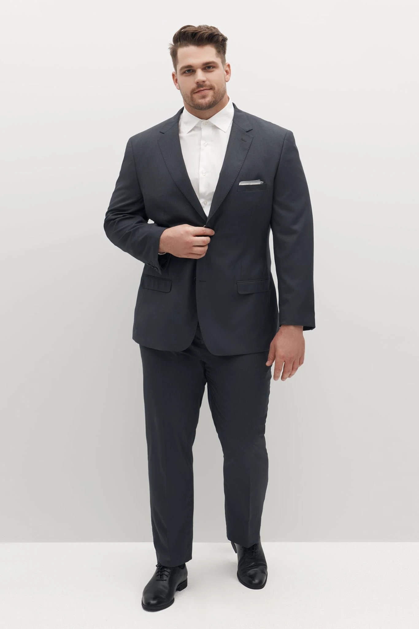 These charcoal gray flat front pants are a wardrobe necessity. Pair with our charcoal gray jacket and vest to complete your three piece suit.