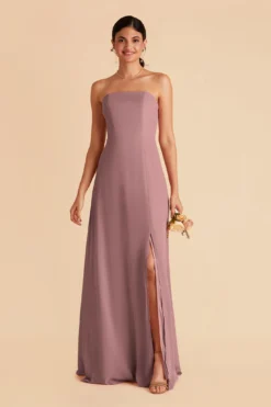 It doesn’t get any simpler than this! Our Chris convertible dress is a straight-neck gown that can be worn with spaghetti straps or with no straps at all. It features a more fitted top, with boning sewn in, for added support when wearing without the straps. Pair this ultra-low-key gown with a statement necklace or dangly earrings.
