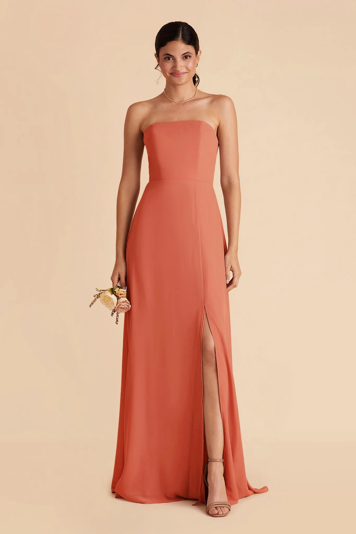 It doesn’t get any simpler than this! Our Chris convertible dress is a straight-neck gown that can be worn with spaghetti straps or with no straps at all. It features a more fitted top, with boning sewn in, for added support when wearing without the straps. Pair this ultra-low-key gown with a statement necklace or dangly earrings.