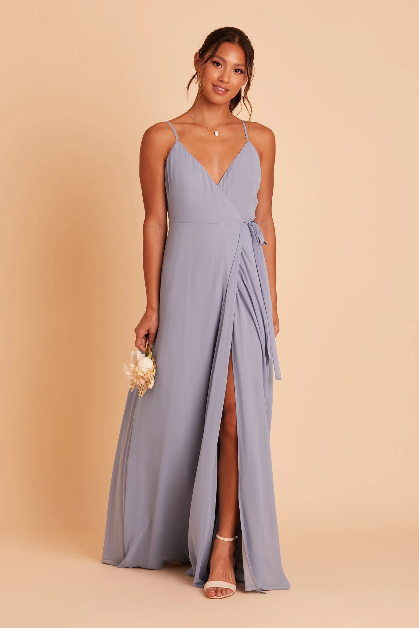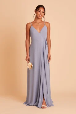 Let’s wrap up the search—this dress is the one. Your girls will thank you for choosing such a figure-flattering full skirt with a waist-cinching bodice sure to look graceful on every body. Speaking of flattering, the signature wrap style draping across the chest for a classic V-neckline plus a matching V in the back draws you in from every angle. Don’t worry, the dainty side bow that keeps this whole thing together has hidden extra security underneath the dress so that the only flashing on the big day will be your crew’s surprise flash dance.
