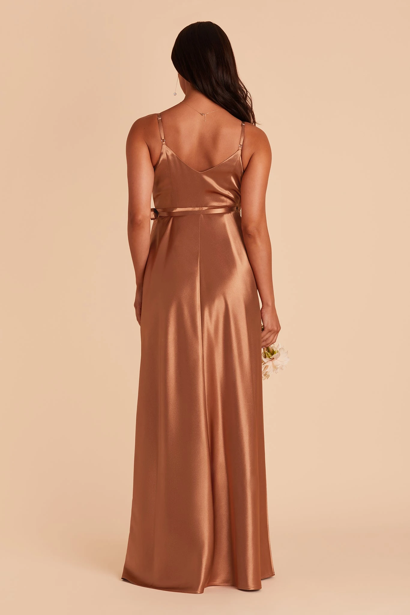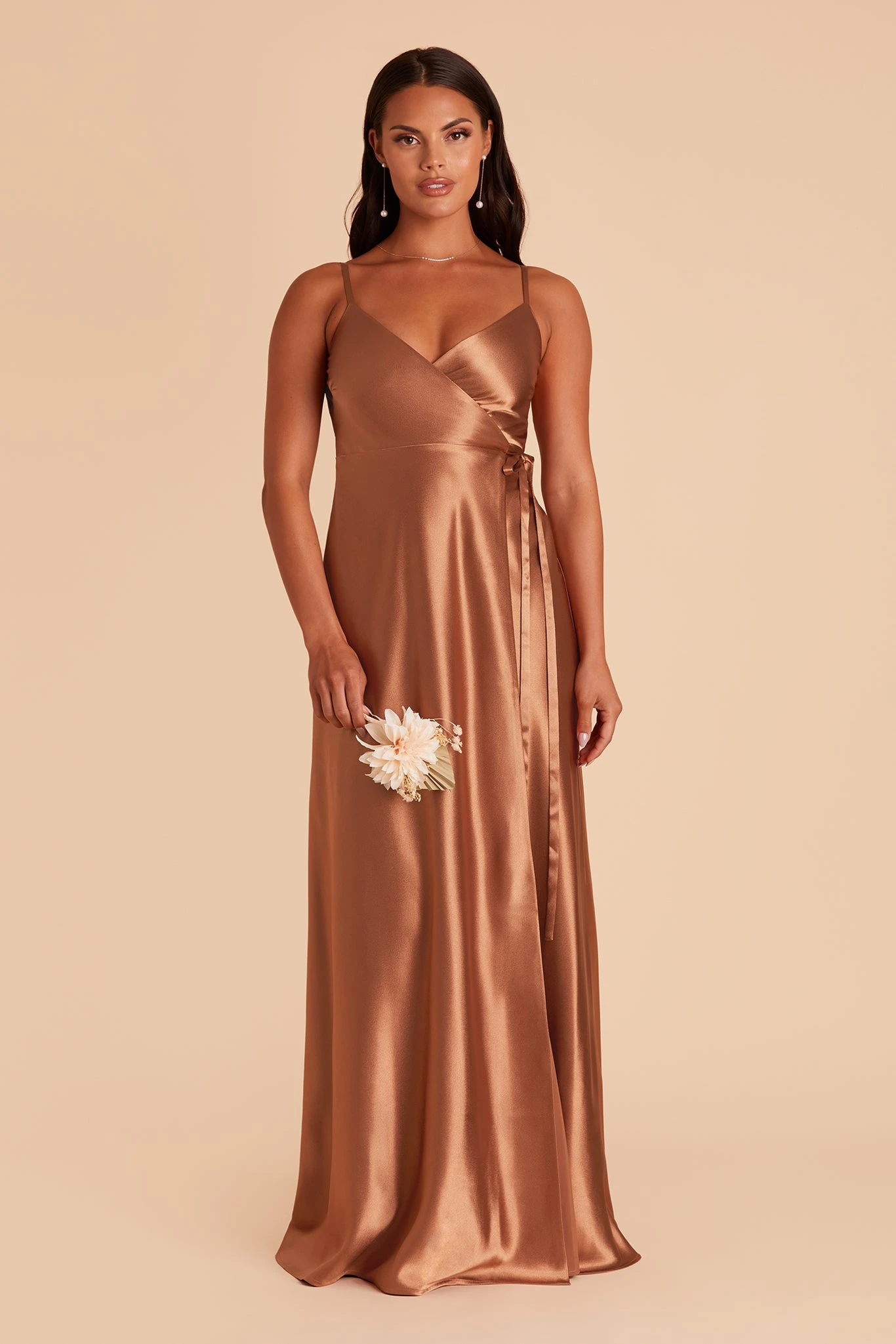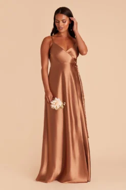 This satin wrap dress is an absolute stunner. Any bridesmaid will love how our Cindy dress flatters, emphasizing her natural waistline and elongating her frame. Perfect for a formal affair, our shimmering satin amps up the glam. The sky’s the limit when it comes to accessorizing Cindy. She pairs beautifully with dangly earrings or a dramatic statement necklace.