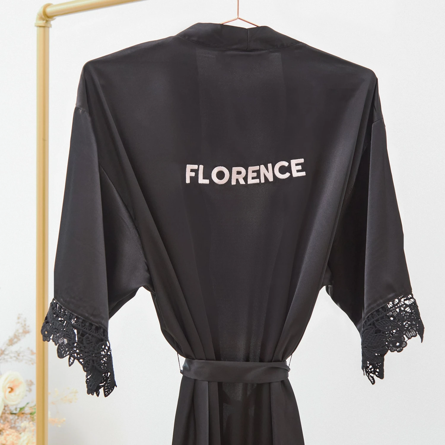 SKU: YMLYZ 7343506292927 Categories: Bridesmaid Robes, Pajamas & Robes Tags: Color bar:black, Features:lace, Personalizable, Satin Robe