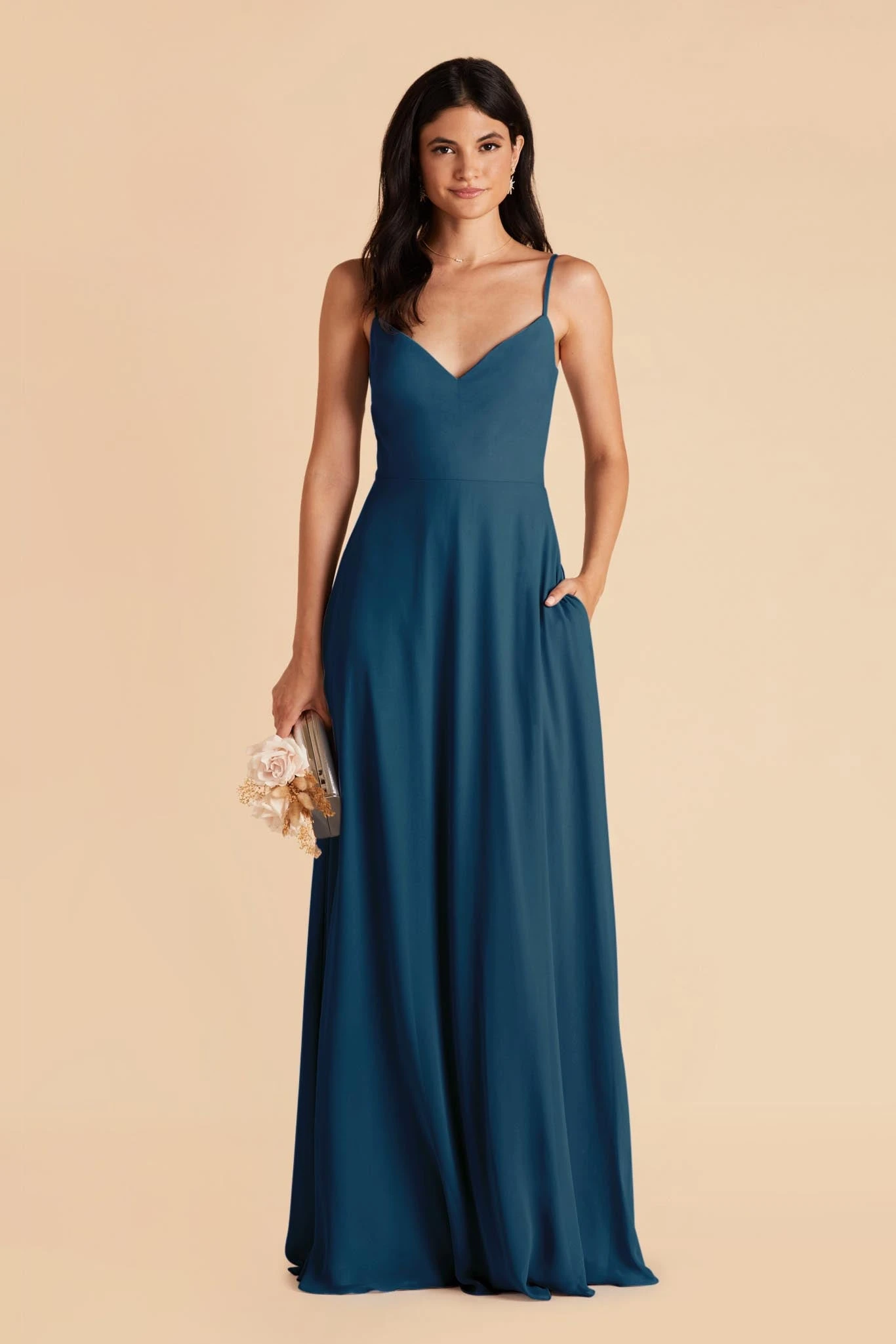 This bridesmaid dress boasts two distinct personalities: soft & romantic, modern & minimal. Thanks to the super smart detachable sleeves, your bridal squad can rock the look that makes them feel authentic while still holding true to your wedding-day vision. With the draped sleeves, it lends a pretty and romantic vibe but without it, the dress transforms to a classic and minimal V-neck with spaghetti straps. Whichever way, the dress is a standout choice for your best supporting ladies.