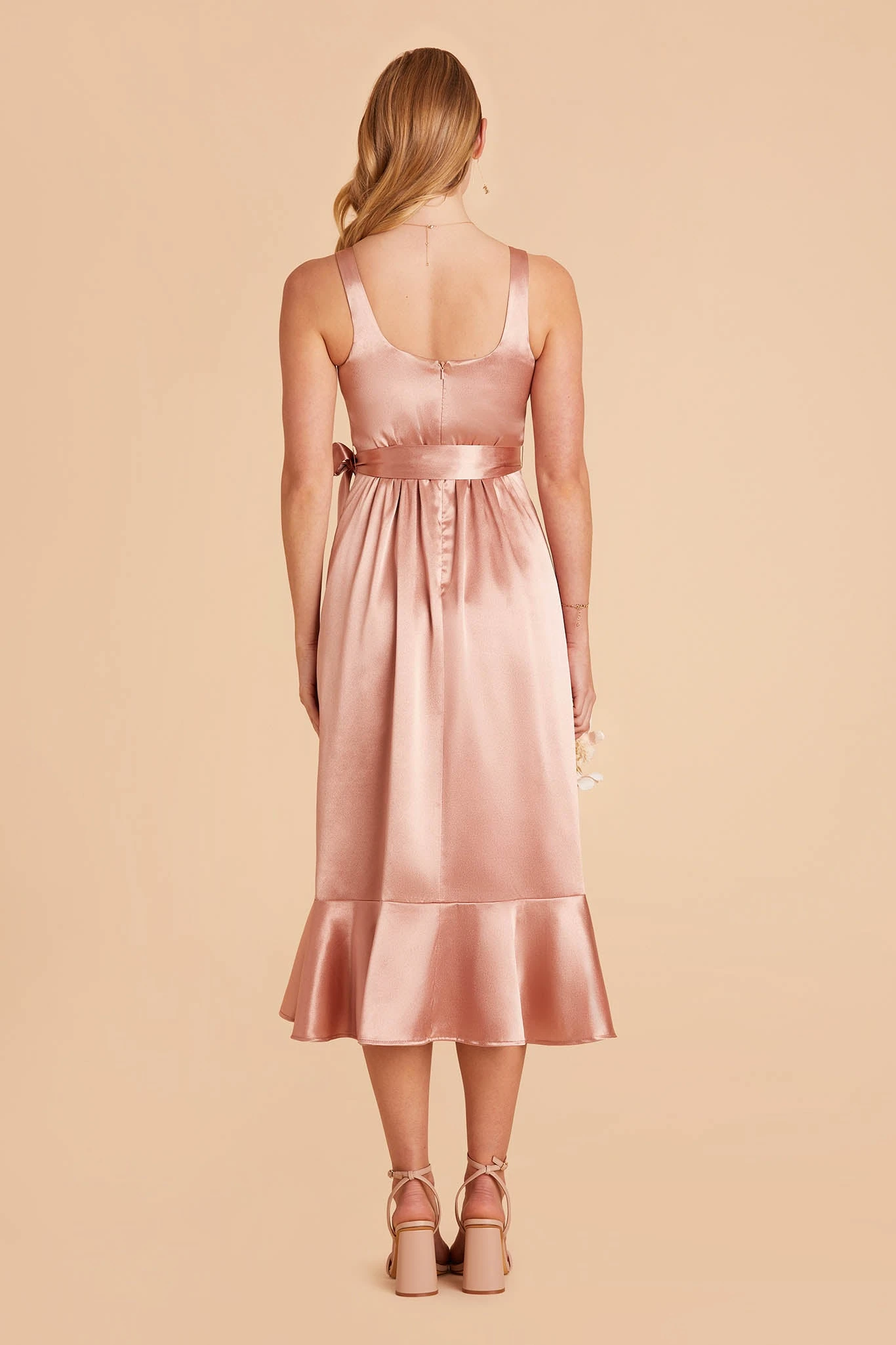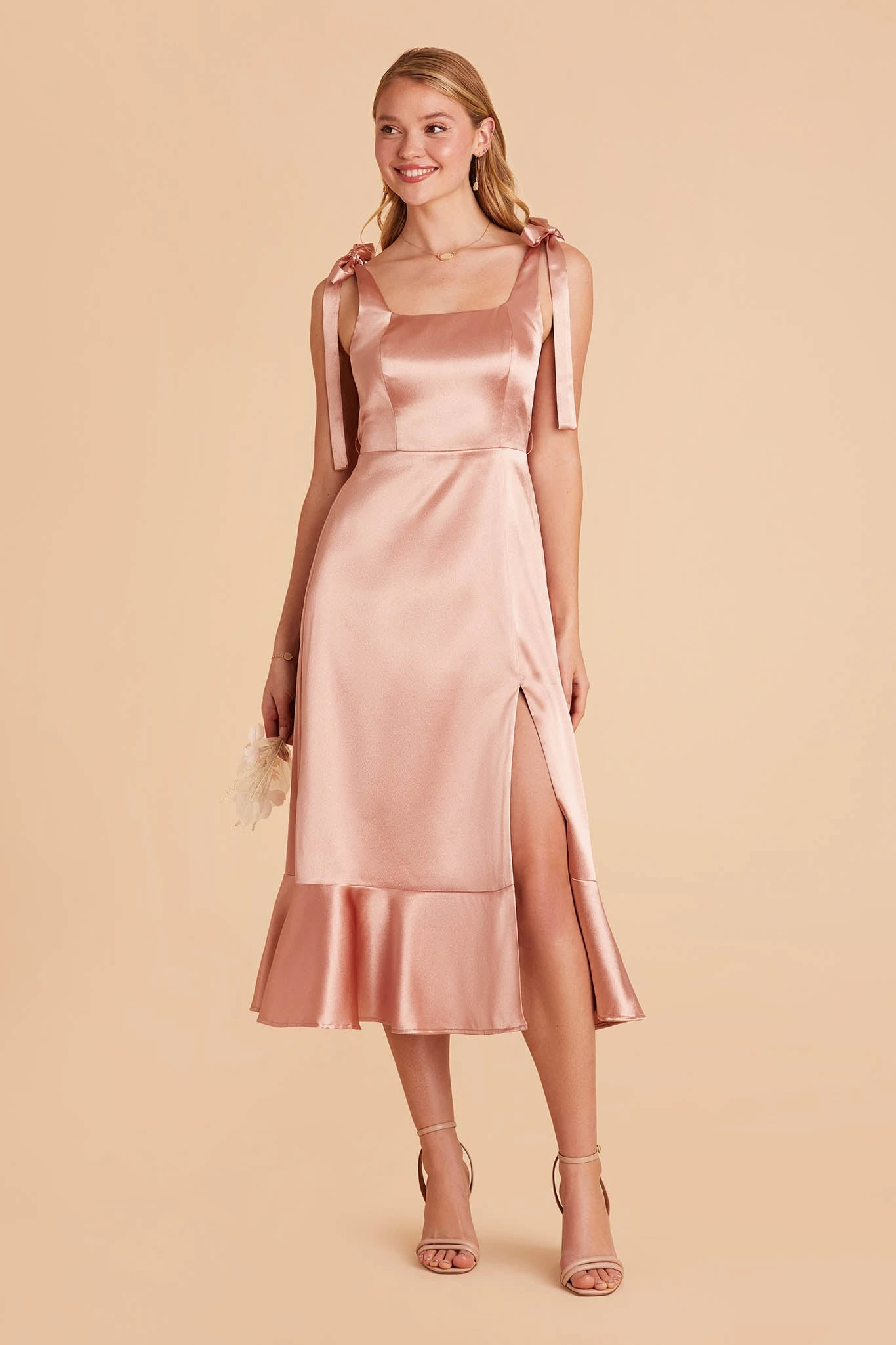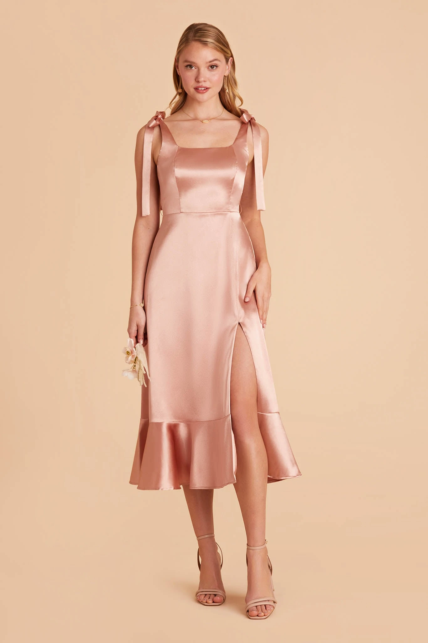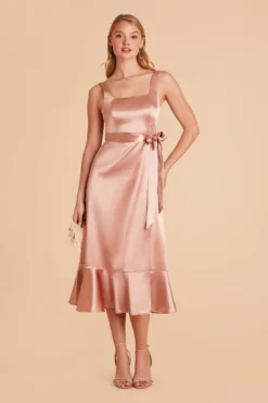 Eugenia Shiny Satin Convertible Midi Dress – Rose Gold