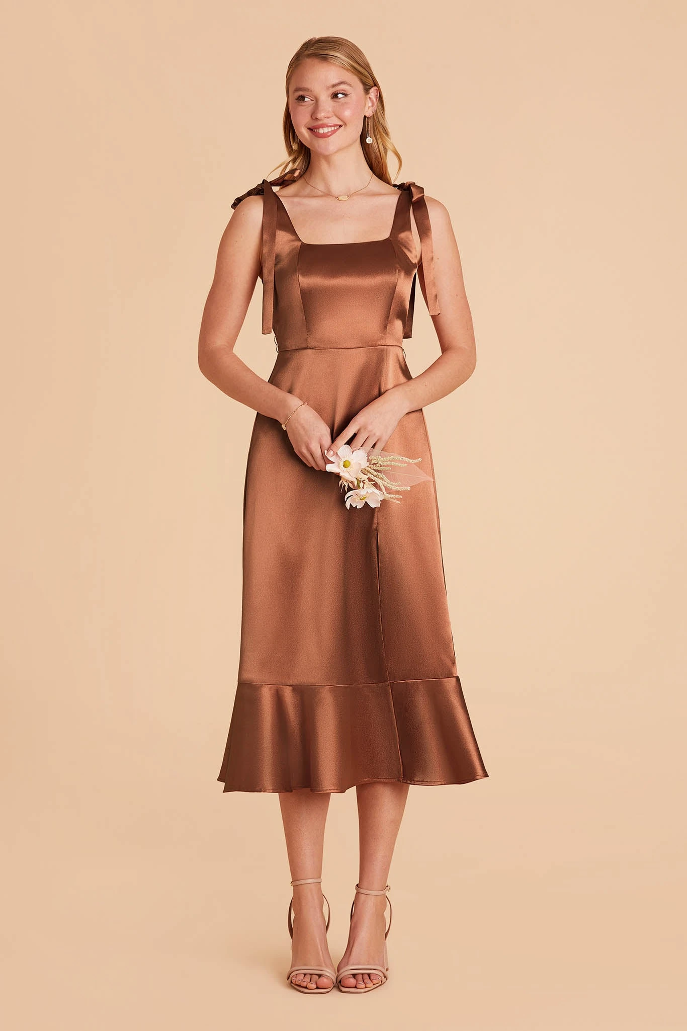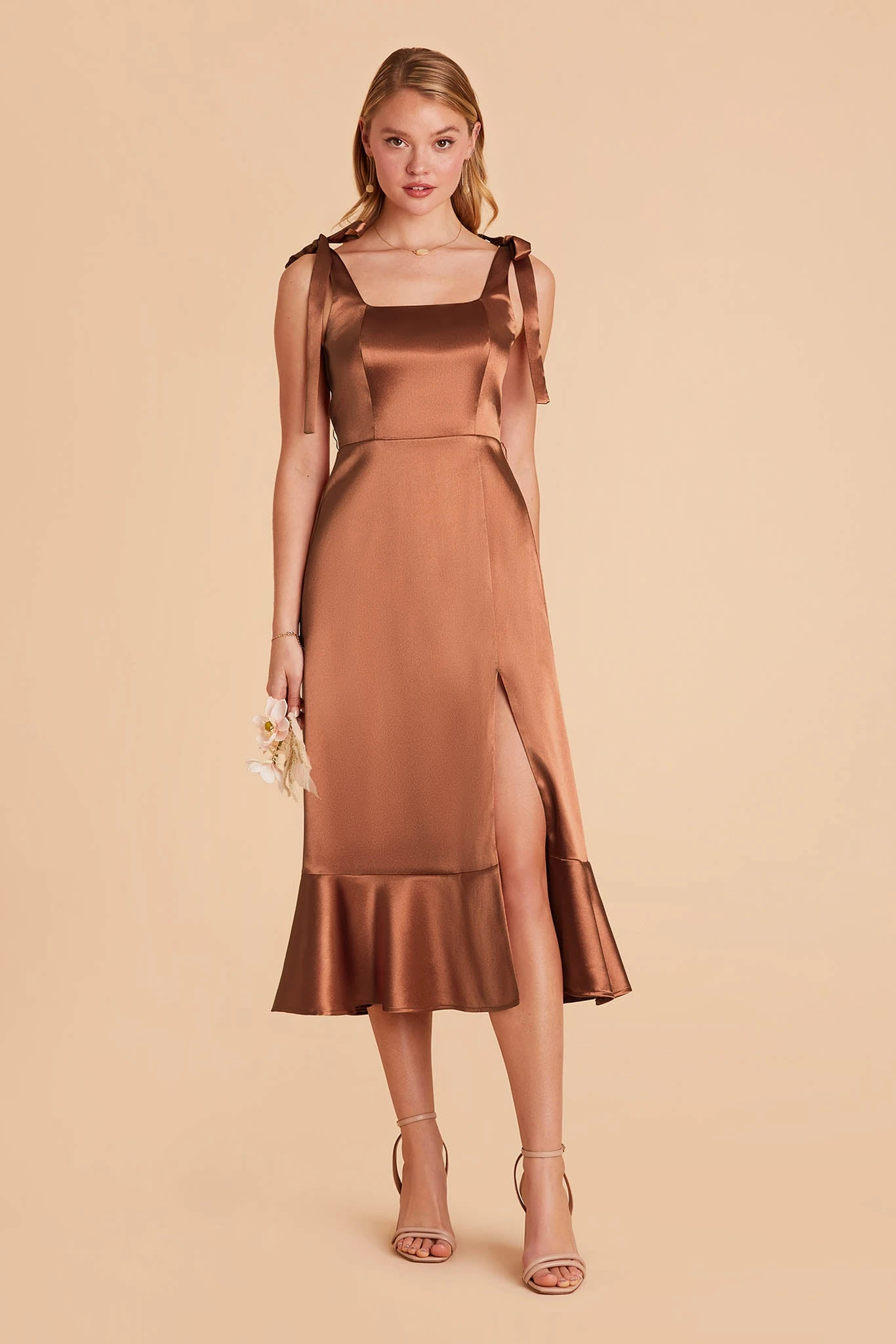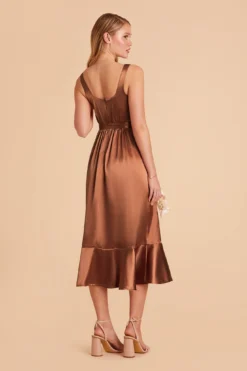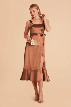 Eugenia Shiny Satin Convertible Midi Dress – Rust