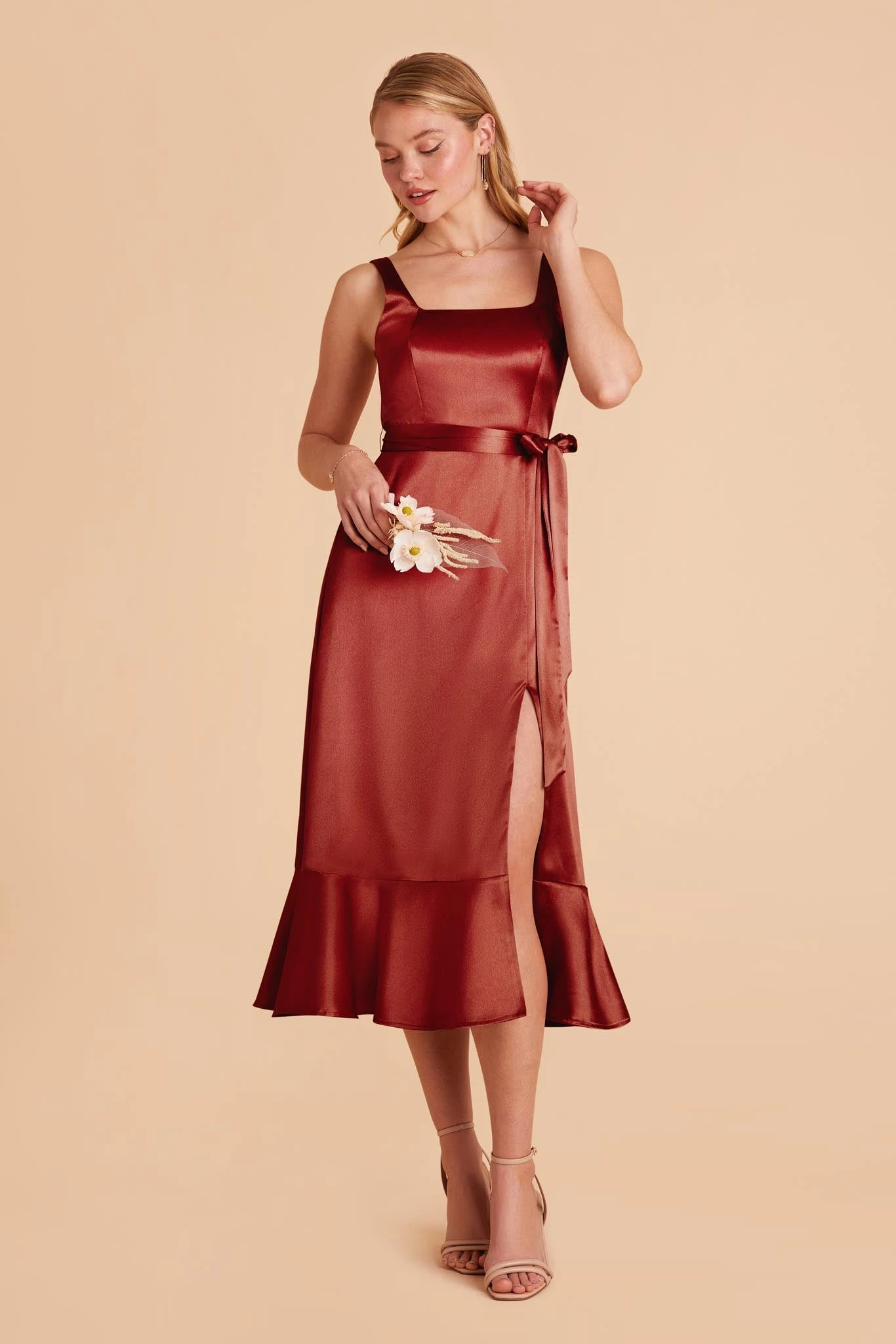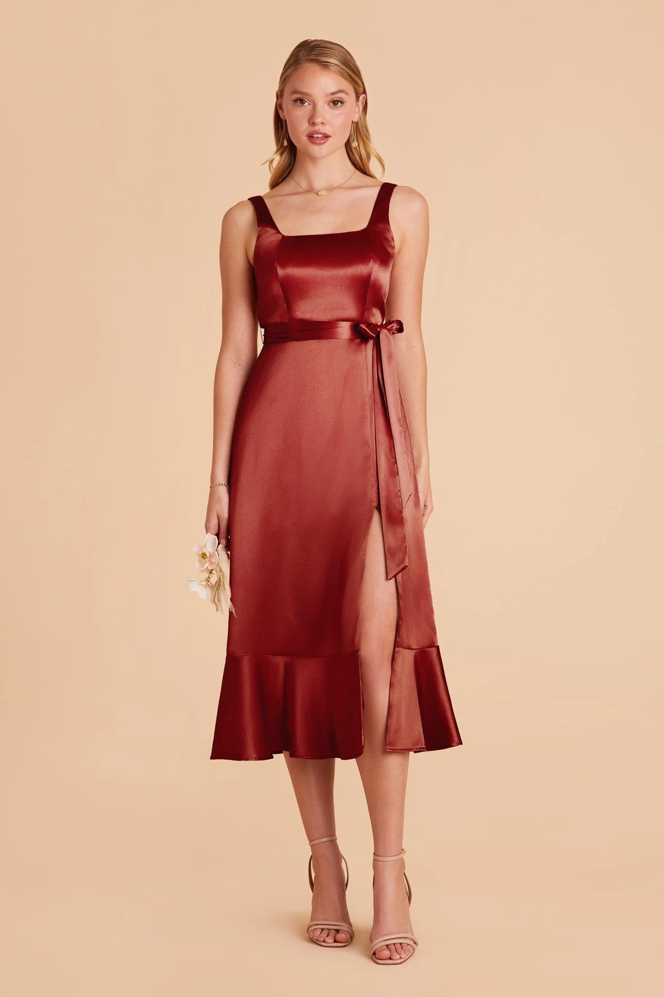 Be the first to review “Eugenia Shiny Satin Convertible Midi Dress – Spice” Cancel reply