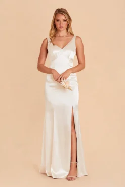 Gloria Shiny Satin Dress – White