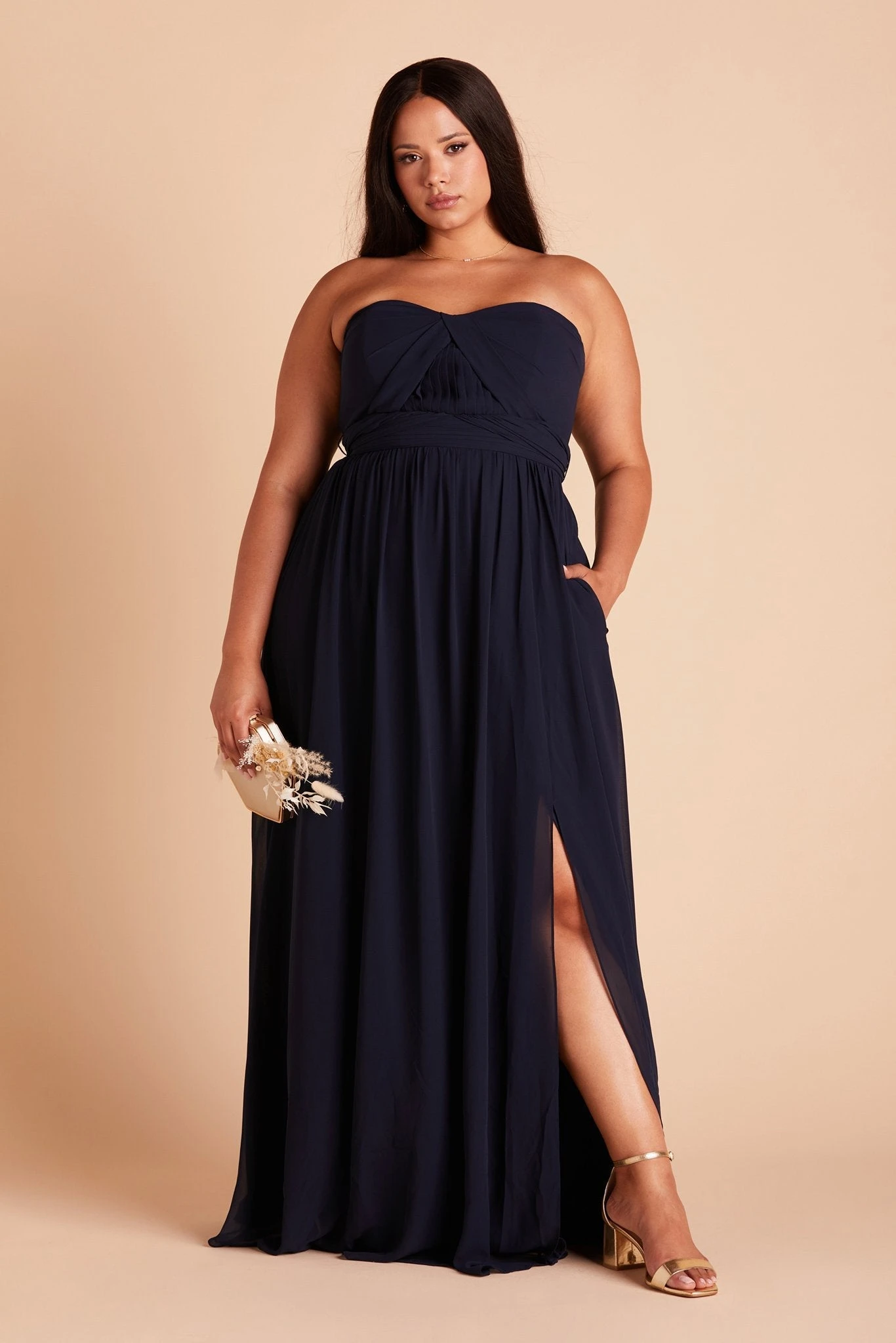 No two bridesmaids are alike and the Grace Convertible bridesmaid dress is your easiest solution for making the entire bridal squad happy—it’s no wonder why it’s our top-selling gown! Spun of airy chiffon, this multiwear bridesmaid dress comes with two long front streamers that you can tie in tons of different ways (halter, fluttery sleeves, off-the-shoulder—you name it). Plus, it features hidden pockets deep enough to hold your phone, tissues, and pins. Float down the aisle in this convertible bridesmaid dress that sways with your every movement.