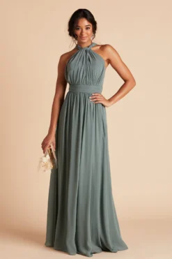 No two bridesmaids are alike and the Grace Convertible bridesmaid dress is your easiest solution for making the entire bridal squad happy—it’s no wonder why it’s our top-selling gown! Spun of airy chiffon, this multiwear bridesmaid dress comes with two long front streamers that you can tie in tons of different ways (halter, fluttery sleeves, off-the-shoulder—you name it). Plus, it features hidden pockets deep enough to hold your phone, tissues, and pins. Float down the aisle in this convertible bridesmaid dress that sways with your every movement.