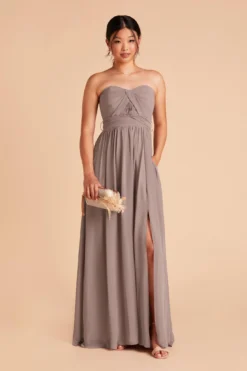 No two bridesmaids are alike and the Grace Convertible bridesmaid dress is your easiest solution for making the entire bridal squad happy—it’s no wonder why it’s our top-selling gown! Spun of airy chiffon, this multiwear bridesmaid dress comes with two long front streamers that you can tie in tons of different ways (halter, fluttery sleeves, off-the-shoulder—you name it). Plus, it features hidden pockets deep enough to hold your phone, tissues, and pins. Float down the aisle in this convertible bridesmaid dress that sways with your every movement.