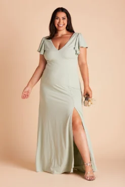 For the girl who loves a little ruffle, we present our Hannah Dress, with an empire waistline and romantic, ruffly sleeves. She features a plunging V front & back, a sexy slit, and a body-skimming silhouette that hugs in all the right places.