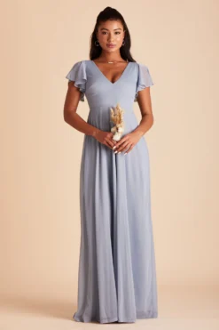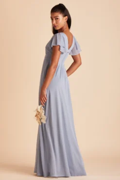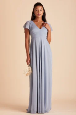 Let’s be honest, not every bridesmaid will want their shoulders and arms fully exposed—but sleeves are not always the most comfortable. We wanted to design a dress that gives you some romantic flair without having to fuss and fidget with your sleeves all night. Enter the Hanna flutter sleeve bridesmaid dress. As the name suggests, the sleeves offer just enough to be sweet, and they drape beautifully over the shoulders so you can have full control of your arm movements for all those bridesmaid duties (and be able to throw your hands up in the air). The V-neck on the front is also mirrored in the back for a touch of skin and thanks to the cut, it can also double as an early maternity dress (you may need to size up).