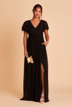 Whatever you need that extra wiggle room for—a baby bump, a second helping, extra cake, or if you simply prefer more breathing room, Hannah is the girl for you. Spun of lightweight chiffon, this dress won’t ever weigh you down while floating down the aisle or getting down on the dancefloor (no one said a bump should keep you from having fun!). The key here is the raised empire waist fitted with a stretchy elastic that’s especially great news for expecting moms. The flutter sleeves add a sweet touch while also offering comfy arm coverage.