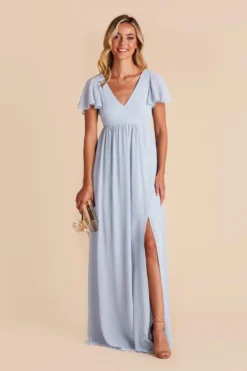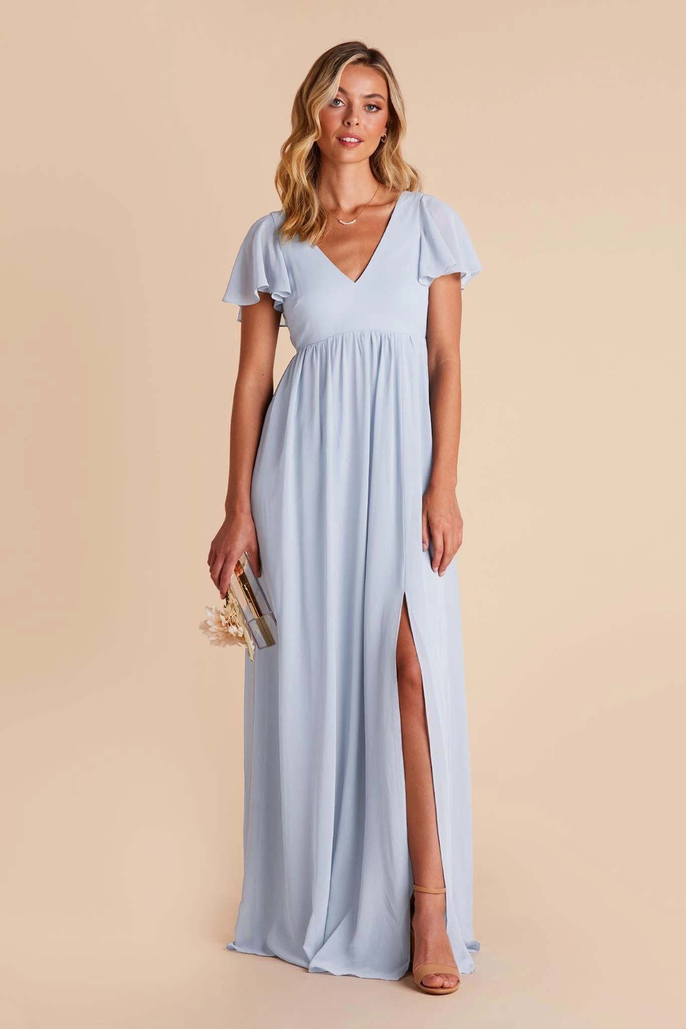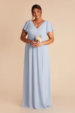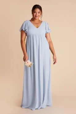 Whatever you need that extra wiggle room for—a baby bump, a second helping, extra cake, or if you simply prefer more breathing room, Hannah is the girl for you. Spun of lightweight chiffon, this dress won’t ever weigh you down while floating down the aisle or getting down on the dancefloor (no one said a bump should keep you from having fun!). The key here is the raised empire waist fitted with a stretchy elastic that’s especially great news for expecting moms. The flutter sleeves add a sweet touch while also offering comfy arm coverage.