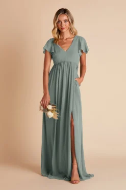 Whatever you need that extra wiggle room for—a baby bump, a second helping, extra cake, or if you simply prefer more breathing room, Hannah is the girl for you. Spun of lightweight chiffon, this dress won’t ever weigh you down while floating down the aisle or getting down on the dancefloor (no one said a bump should keep you from having fun!). The key here is the raised empire waist fitted with a stretchy elastic that’s especially great news for expecting moms. The flutter sleeves add a sweet touch while also offering comfy arm coverage.