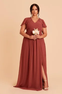 Whatever you need that extra wiggle room for—a baby bump, a second helping, extra cake, or if you simply prefer more breathing room, Hannah is the girl for you. Spun of lightweight chiffon, this dress won’t ever weigh you down while floating down the aisle or getting down on the dancefloor (no one said a bump should keep you from having fun!). The key here is the raised empire waist fitted with a stretchy elastic that’s especially great news for expecting moms. The flutter sleeves add a sweet touch while also offering comfy arm coverage.