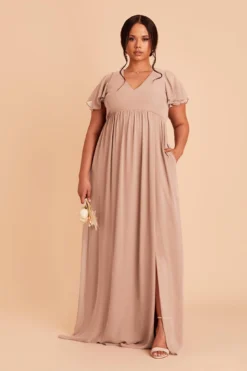 Whatever you need that extra wiggle room for—a baby bump, a second helping, extra cake, or if you simply prefer more breathing room, Hannah is the girl for you. Spun of lightweight chiffon, this dress won’t ever weigh you down while floating down the aisle or getting down on the dancefloor (no one said a bump should keep you from having fun!). The key here is the raised empire waist fitted with a stretchy elastic that’s especially great news for expecting moms. The flutter sleeves add a sweet touch while also offering comfy arm coverage.