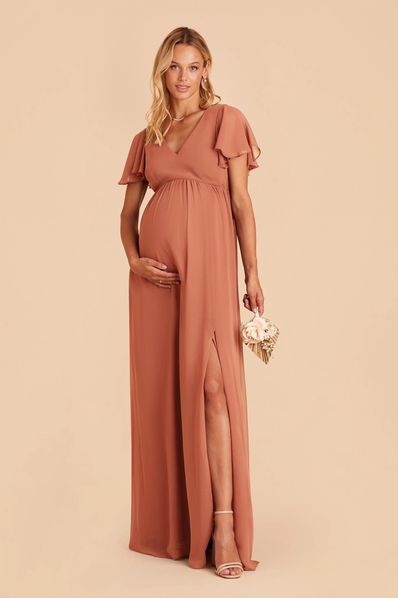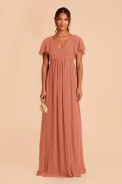 Whatever you need that extra wiggle room for—a baby bump, a second helping, extra cake, or if you simply prefer more breathing room, Hannah is the girl for you. Spun of lightweight chiffon, this dress won’t ever weigh you down while floating down the aisle or getting down on the dancefloor (no one said a bump should keep you from having fun!). The key here is the raised empire waist fitted with a stretchy elastic that’s especially great news for expecting moms. The flutter sleeves add a sweet touch while also offering comfy arm coverage.
