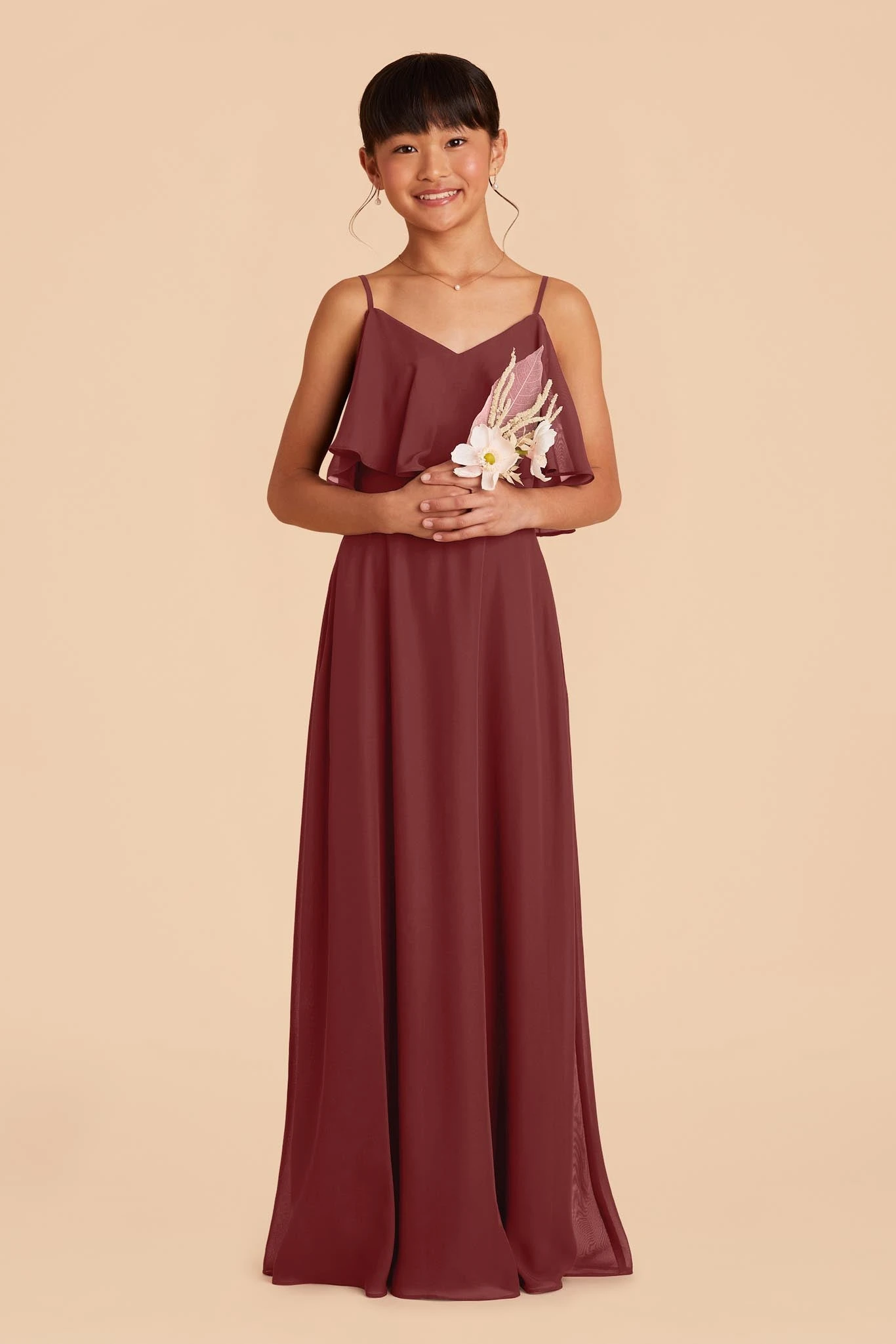 SKU: YMLYZ 7465855615167 Categories: Bridesmaid Dresses, Junior Bridesmaid Dresses Tags: Features:ruffles, Holiday Dresses, Rosewood Dresses, V-Neck