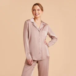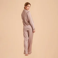 Jonny Long Sleeves And Pants Satin PJ Set – Mauve Taupe