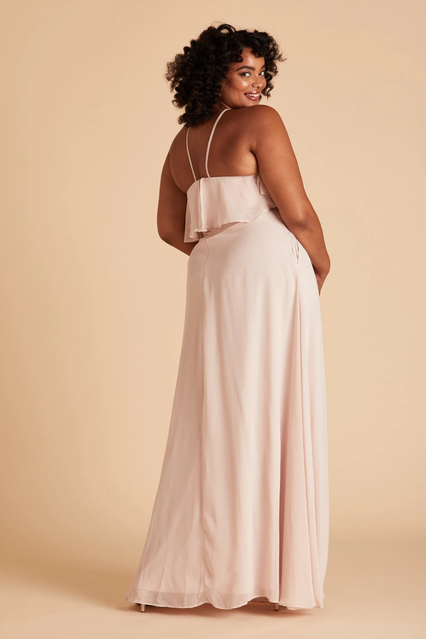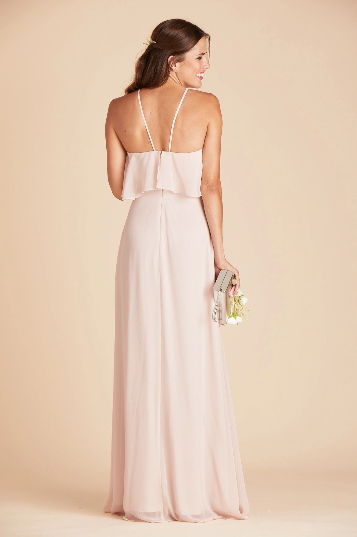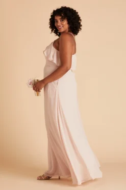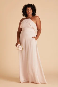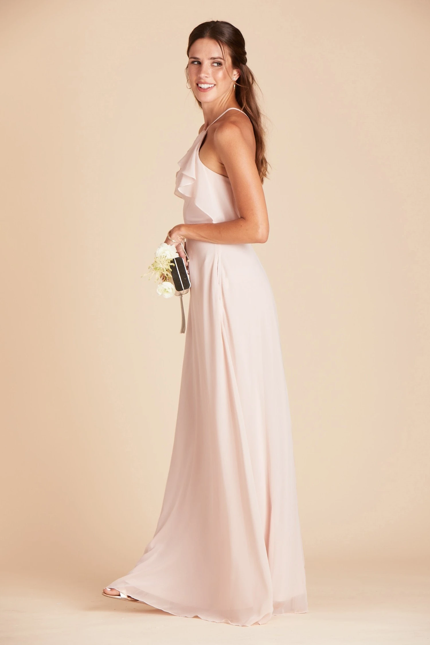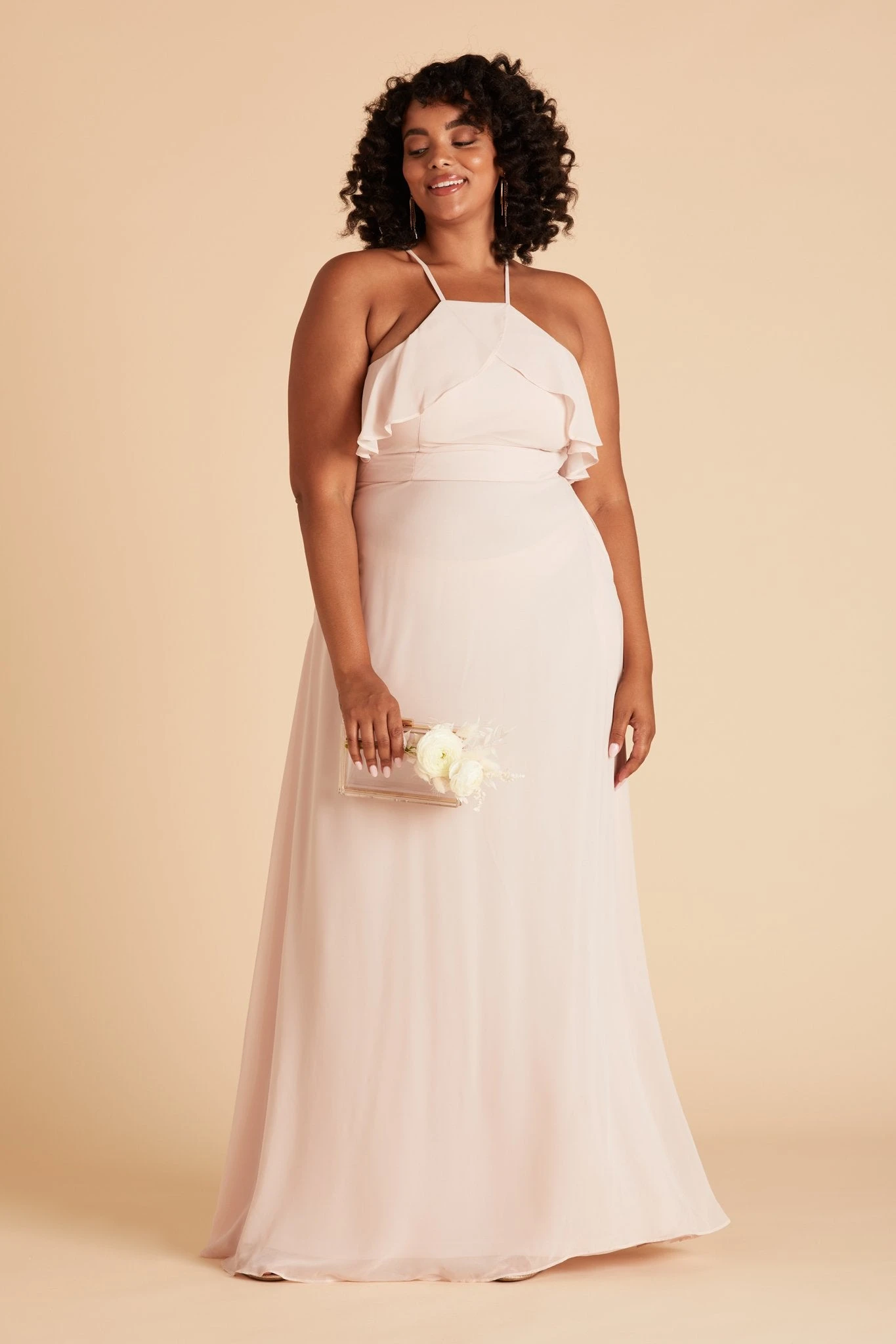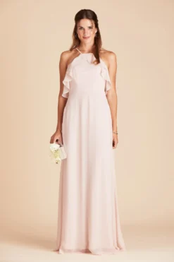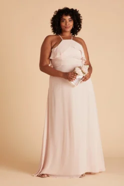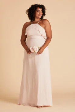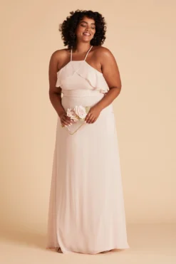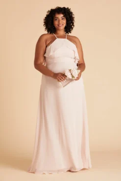If you’re looking for the quintessential bridal party dress that will make your #BridalSquad glow from the inside out, then you’ve found it. The picture-perfect bridal party dress, that’s sure to compliment every bridesmaid’s shape and style, comes to life in our Jules Dress. It’s masterfully designed with super-soft ruffles, a refreshed halter neckline, and a long free-flowing spun chiffon A-line silhouette that dances against your body while you gleefully dance the night away. The best part? This bridal party dress is sure to please even the pickiest of bridesmaids and features built-in cups for added comfort, extra support, and a boost of self-confidence to keep your spirit high and your girls perky.