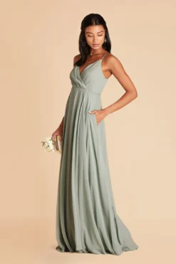 A dress so elegant that it could even make Grace Kelly blush. You’ll get swept away in your bridesmaid’s duties in this chiffon dress that flows like a soft river wrapped around your body. Its V-shaped neckline subtly accentuates your collarbone for an elevated and sophisticated look. The best part? Wearing our Kaia bridesmaid dress is like sleeping in a cloud of comfort and style with its strategically placed and slightly raised elastic-backed empire waist that leaves the perfect amount of space for effortlessly walking down the aisle and dancing the night away.