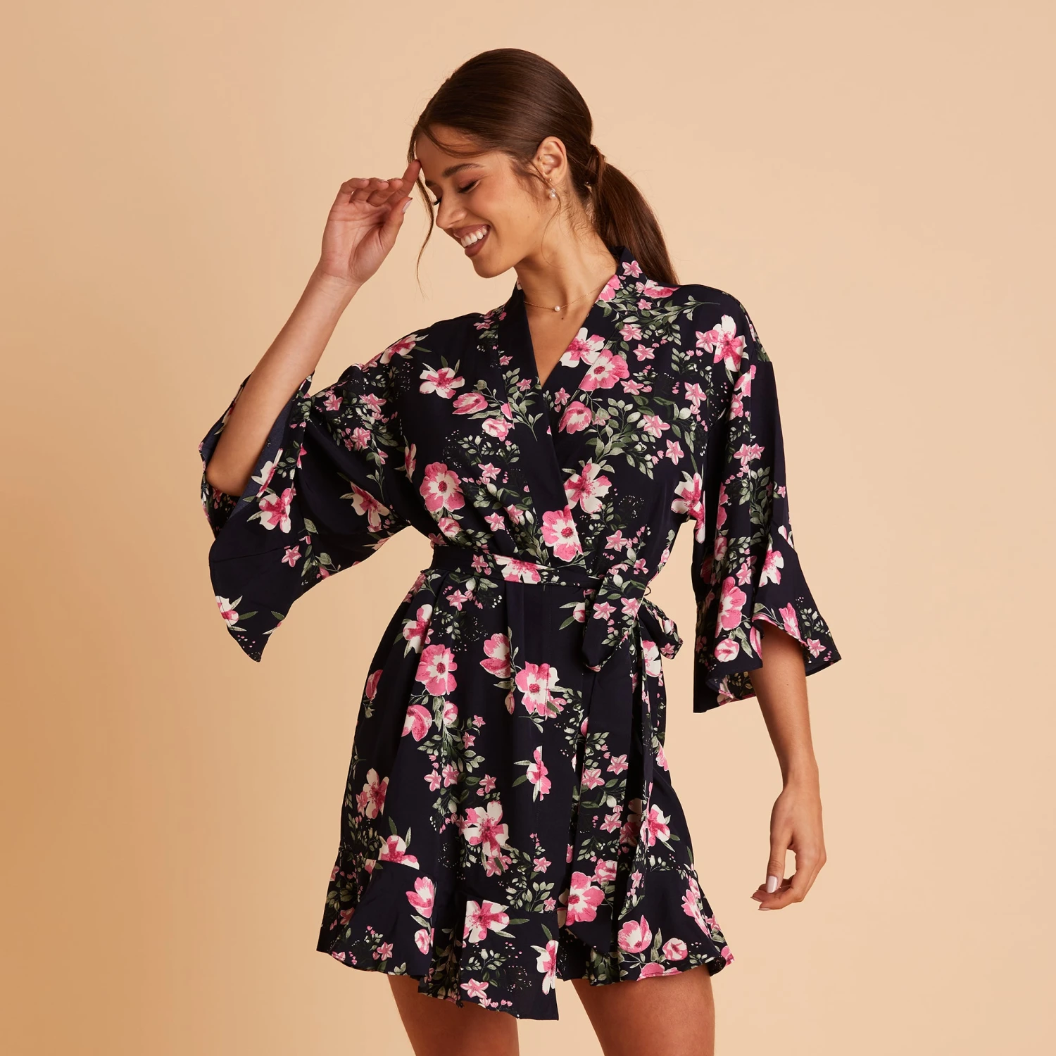 Kenny Floral Ruffle Robe – Midnight Pink Floral