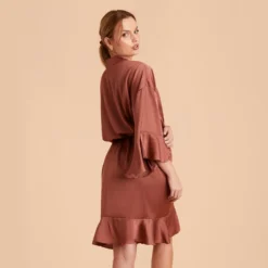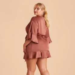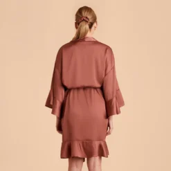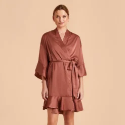 Kenny Ruffle Satin Robe – Desert Rose