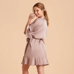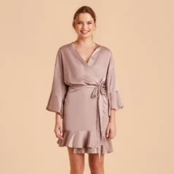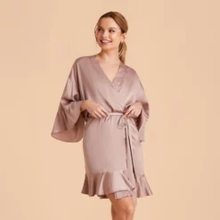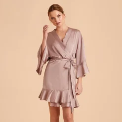 Kenny Ruffle Satin Robe – Mauve Taupe