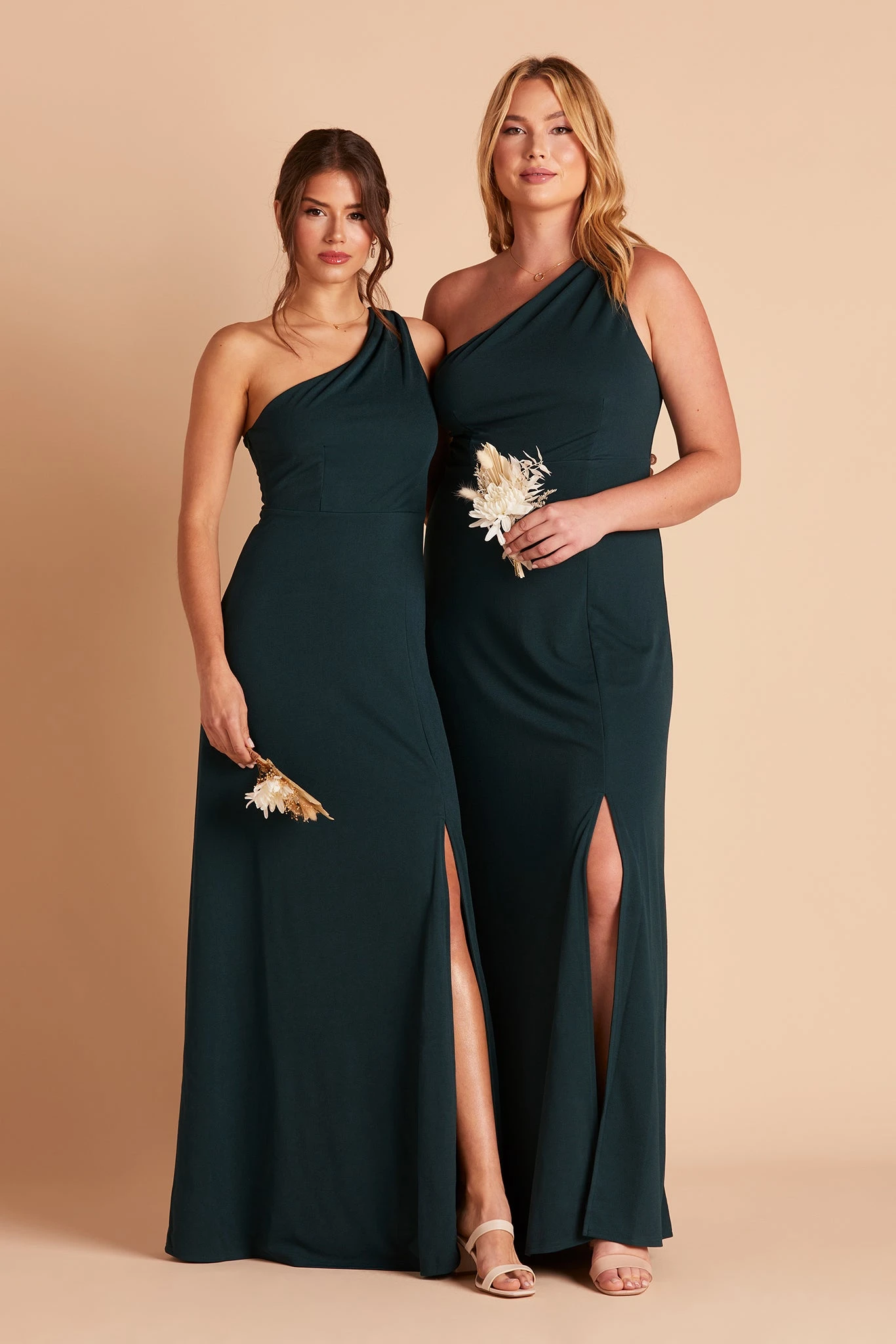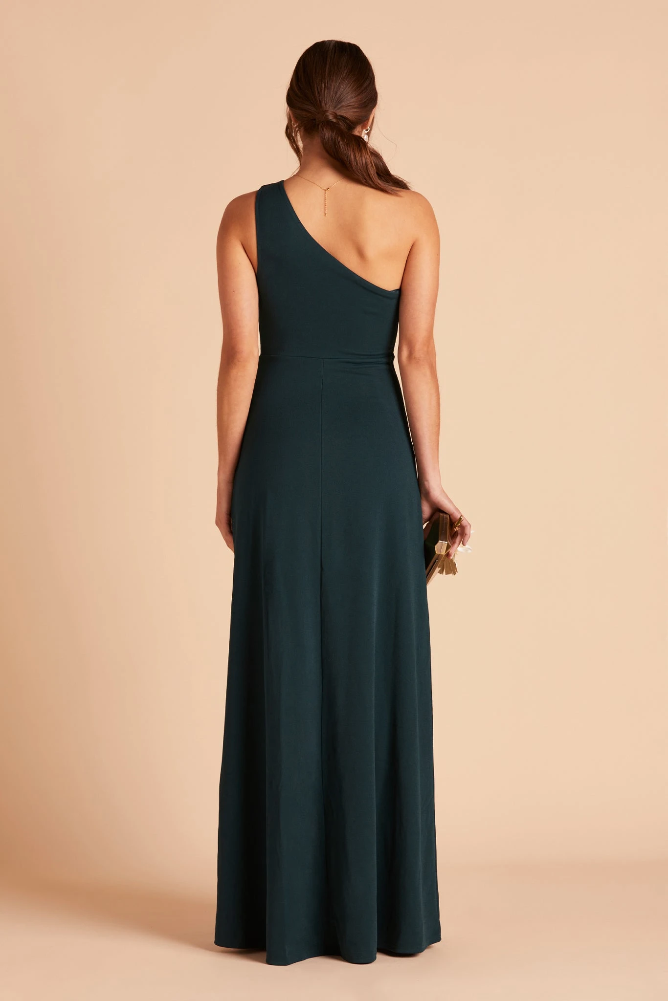 We love a good goddess vibe and this crepe bridesmaid dress does it a newfangled way thanks to our stretchy performance fabric. This one-shoulder bridesmaid dress features soft pleating that fades out at the top of the chest, giving off a proper ladylike vibe and makes for a stellar choice for bridesmaids who tend toward a modest look.