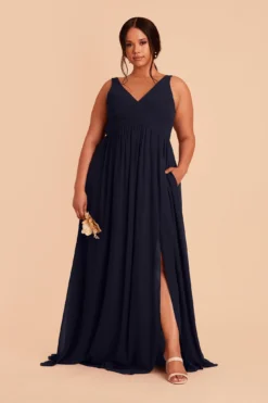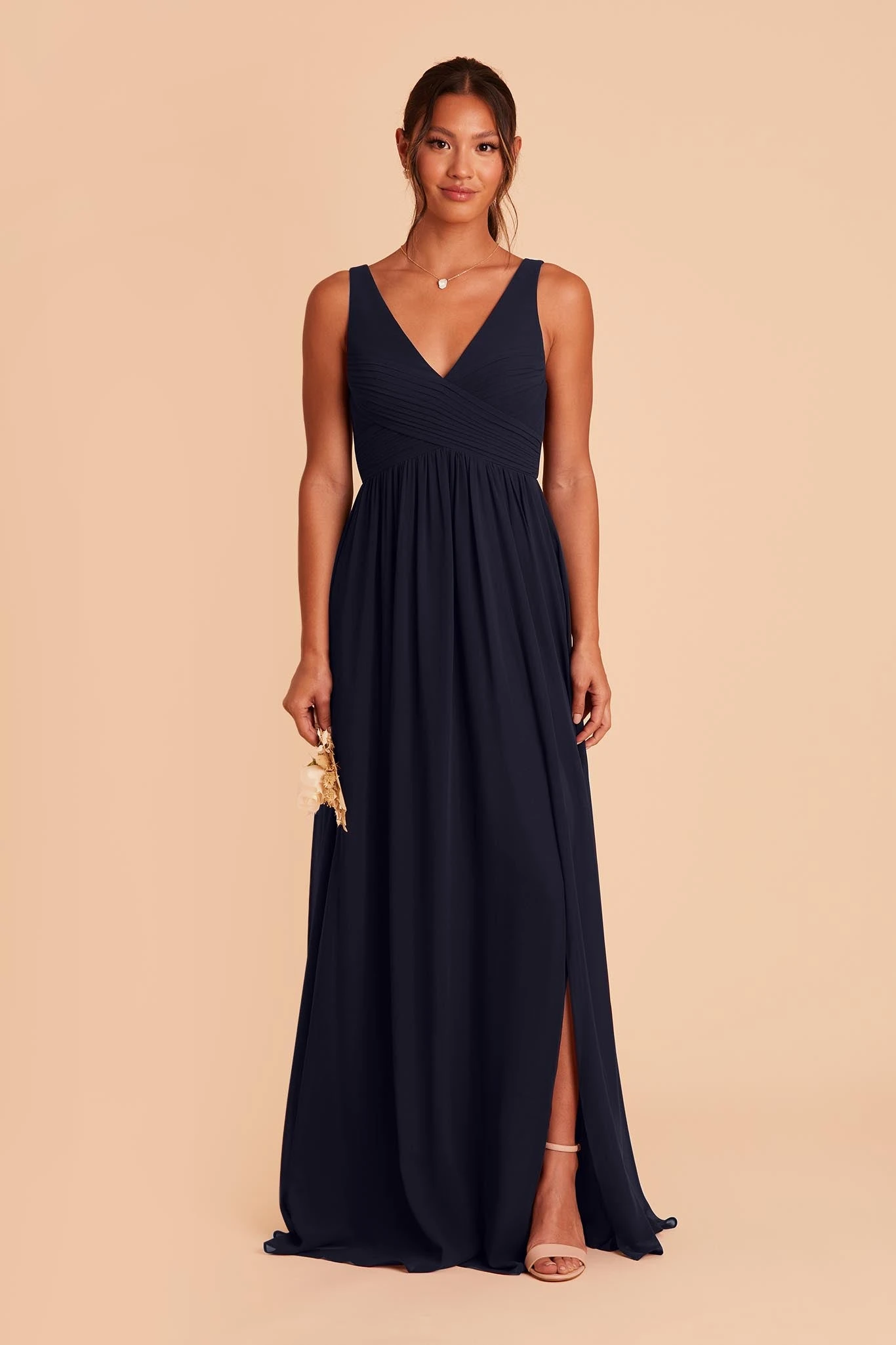 Pretty ✔ Classy ✔ Comfy ✔ This floor-length sleeveless chiffon bridesmaid dress has a raised empire waist which means it’s not only perfect for someone who wants some extra breathing room (while looking long & lean), it also doubles as a maternity bridesmaid dress for expecting moms with a growing baby bump. The bodice features beautiful pleating and because everyone can use a little bit of sex appeal while keeping things classy, we also added a slit for a flash of leg.