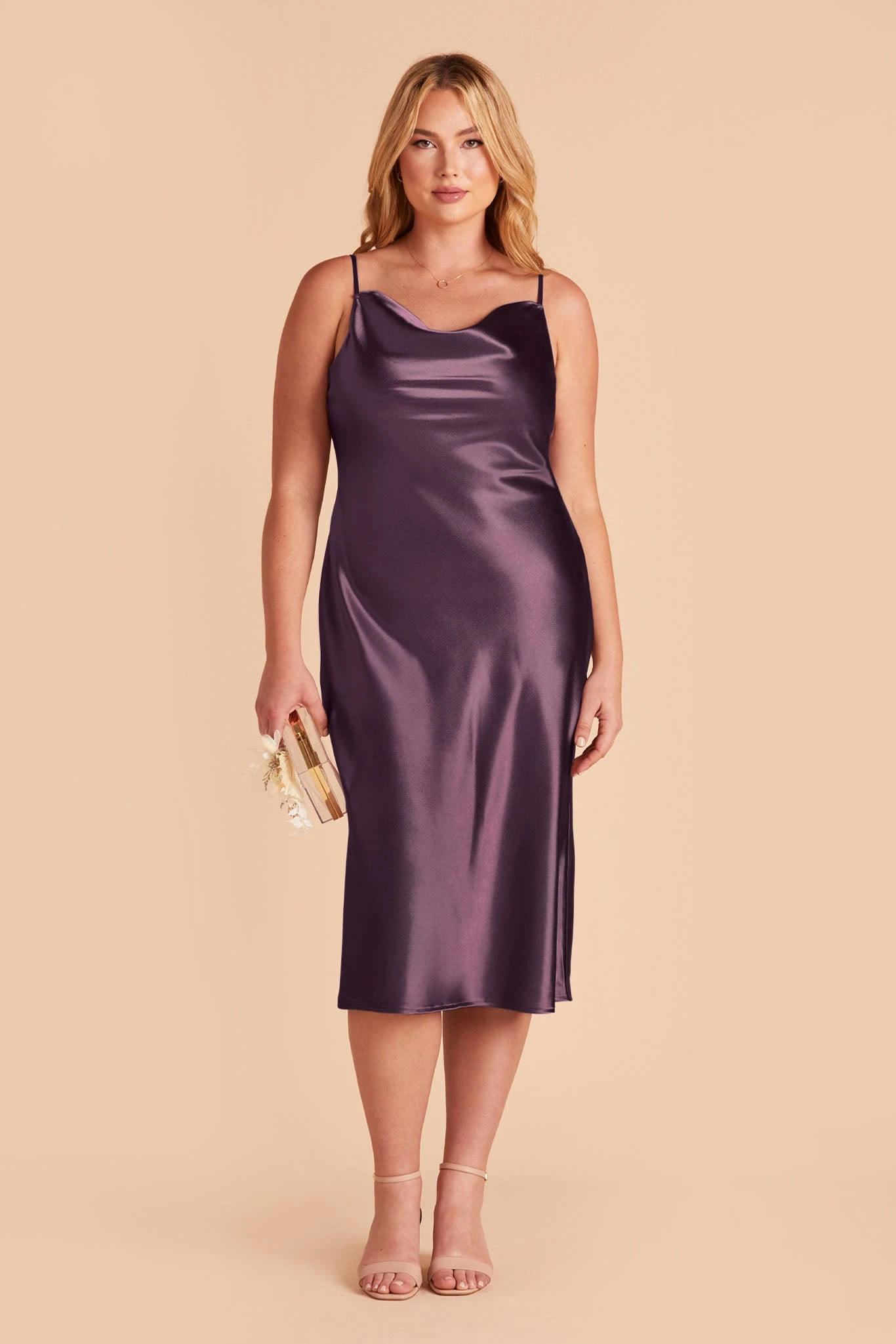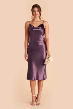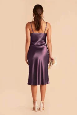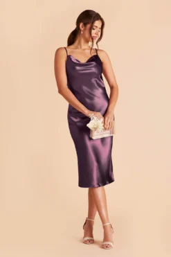 Be the first to review “Lisa Shiny Satin Midi Dress – Plum” Cancel reply