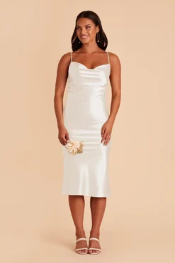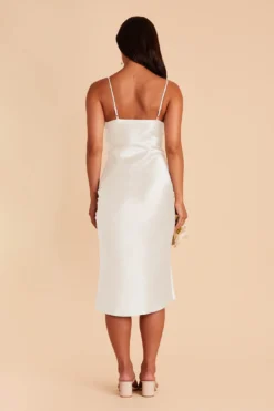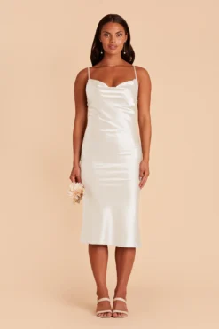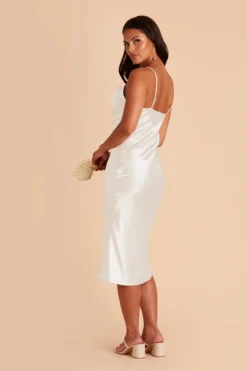 Lisa Shiny Satin Midi Dress – White