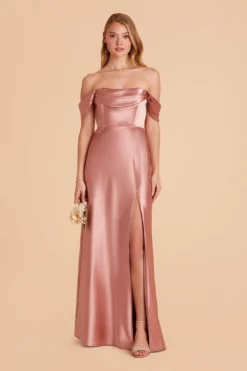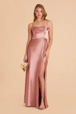 Mia Shiny Satin Convertible Dress – Desert Rose