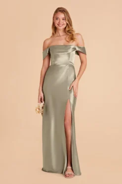 Be the first to review “Mia Shiny Satin Convertible Dress – Moss Green” Cancel reply