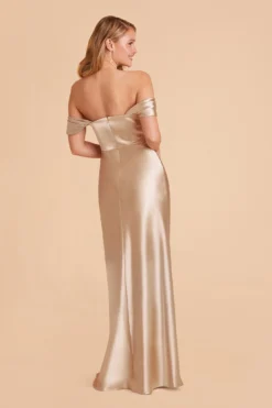Mia Shiny Satin Convertible Dress – Neutral Champagne