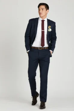 Sharp, classic & smooth! A more subtle alternative to the classic black, this suit was designed with the outdoor wedding in mind offering a more casual look with a crisp finish! Clean cut and transitional, this suit is also a wardrobe essential.