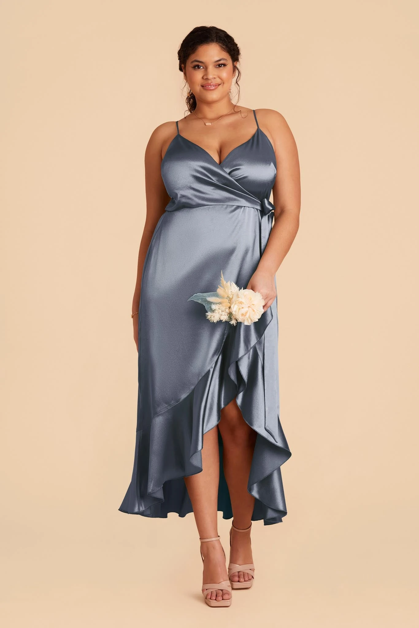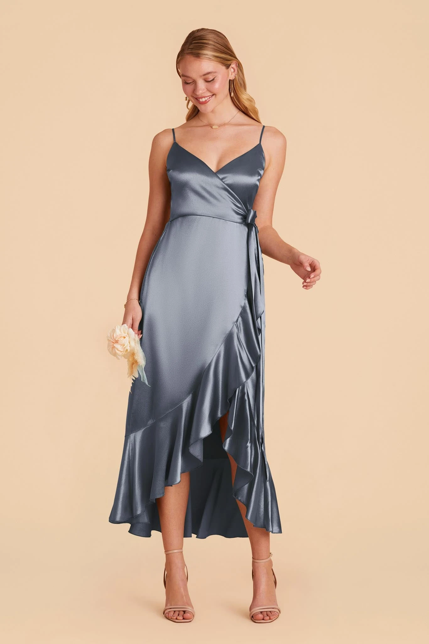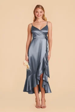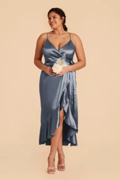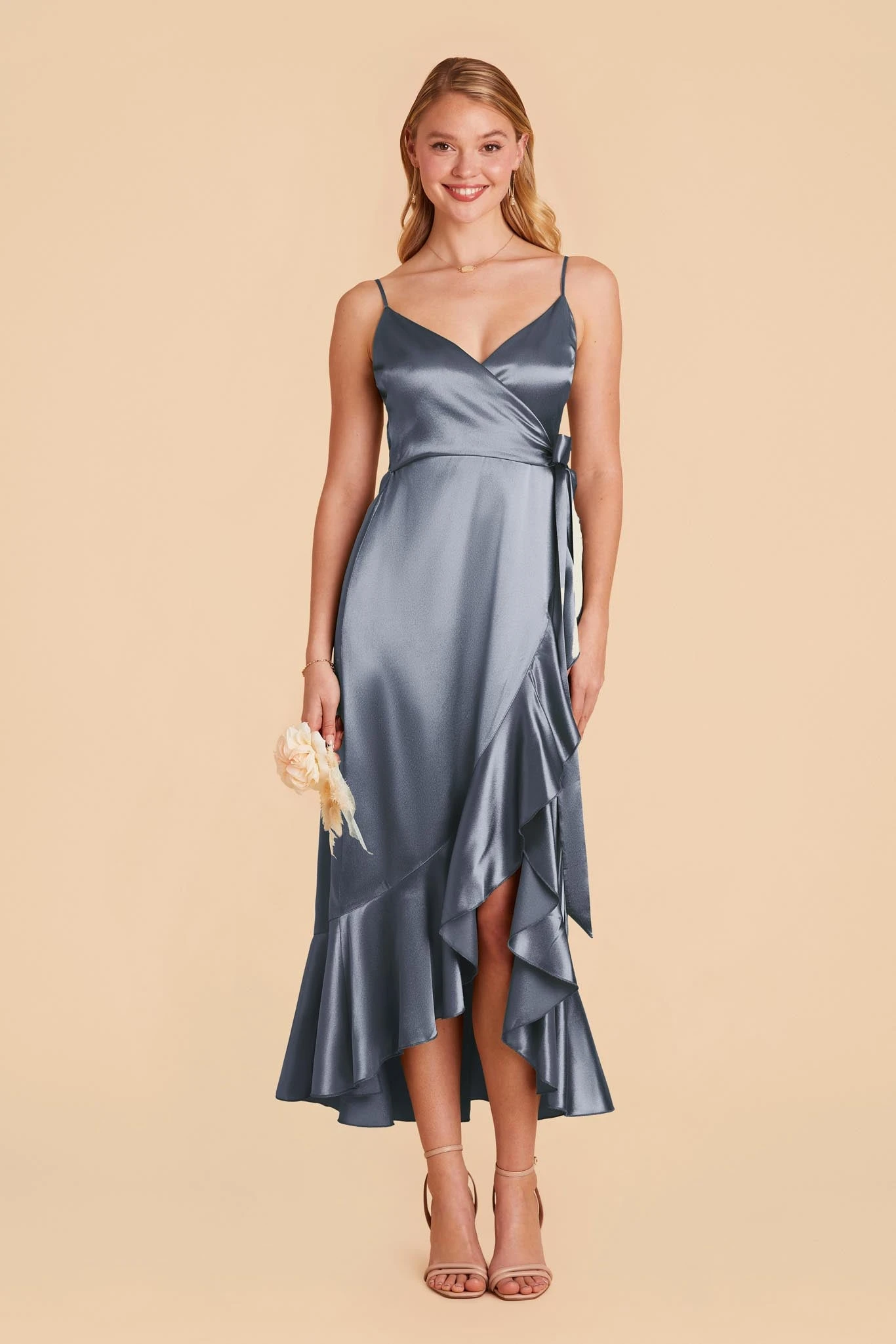 This isn’t Ennie-ol’ midi dress, if you’ll pardon the pun. The unique neckline is somewhere between a scoop neck and a cowl neck (and it’s the dead center of style). Ennie makes any bridesmaid look instantly pulled-together, and the soft draping of the neckline elevates the look. This dress is designed to hug your body, so we recommend sizing up if you prefer a looser fit. Check out our bridesmaid heels to complete the look.