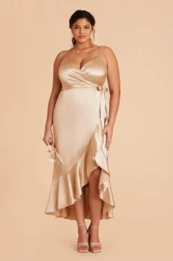 This isn’t Ennie-ol’ midi dress, if you’ll pardon the pun. The unique neckline is somewhere between a scoop neck and a cowl neck (and it’s the dead center of style). Ennie makes any bridesmaid look instantly pulled-together, and the soft draping of the neckline elevates the look. This dress is designed to hug your body, so we recommend sizing up if you prefer a looser fit. Check out our bridesmaid heels to complete the look.